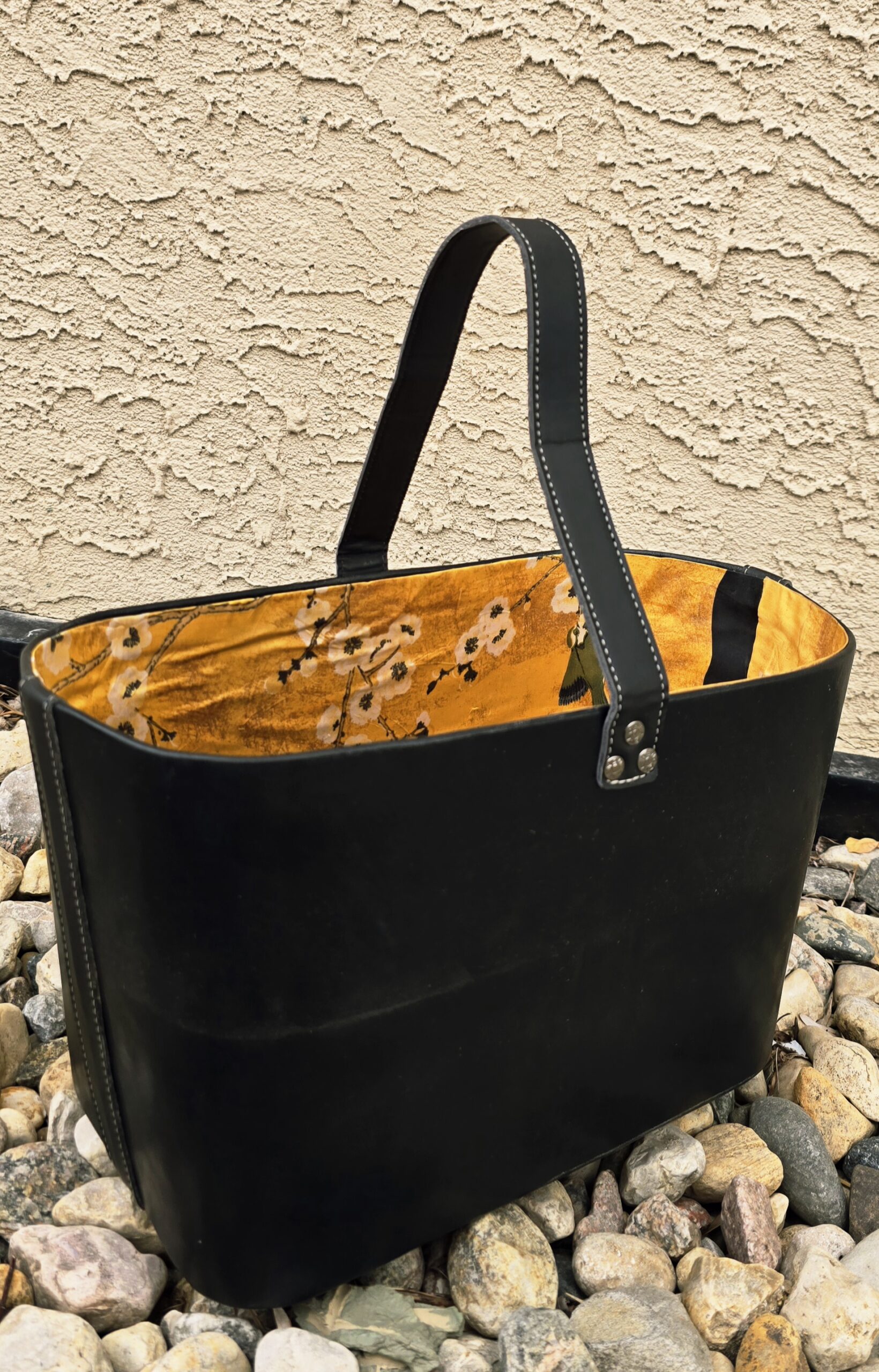 Lined with authentic yellow floral Ankara fabric