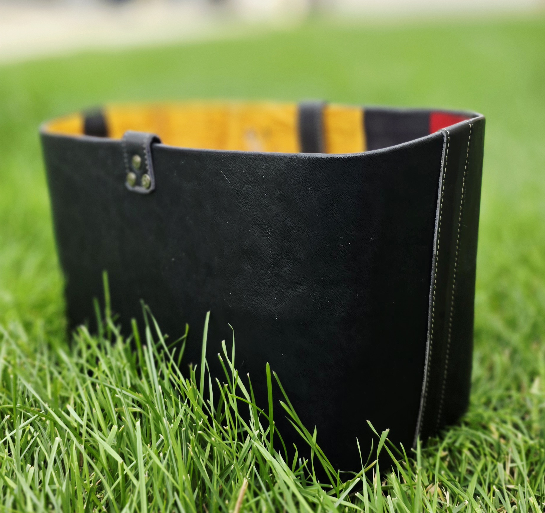 Sturdy black leather-textured exterior